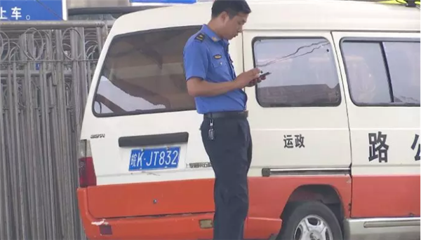 其实,离出站口仅20米远的距离,就停放着一辆公路部门的执法车辆,车辆旁边各站着一名城管队员和一名运政执法人员。